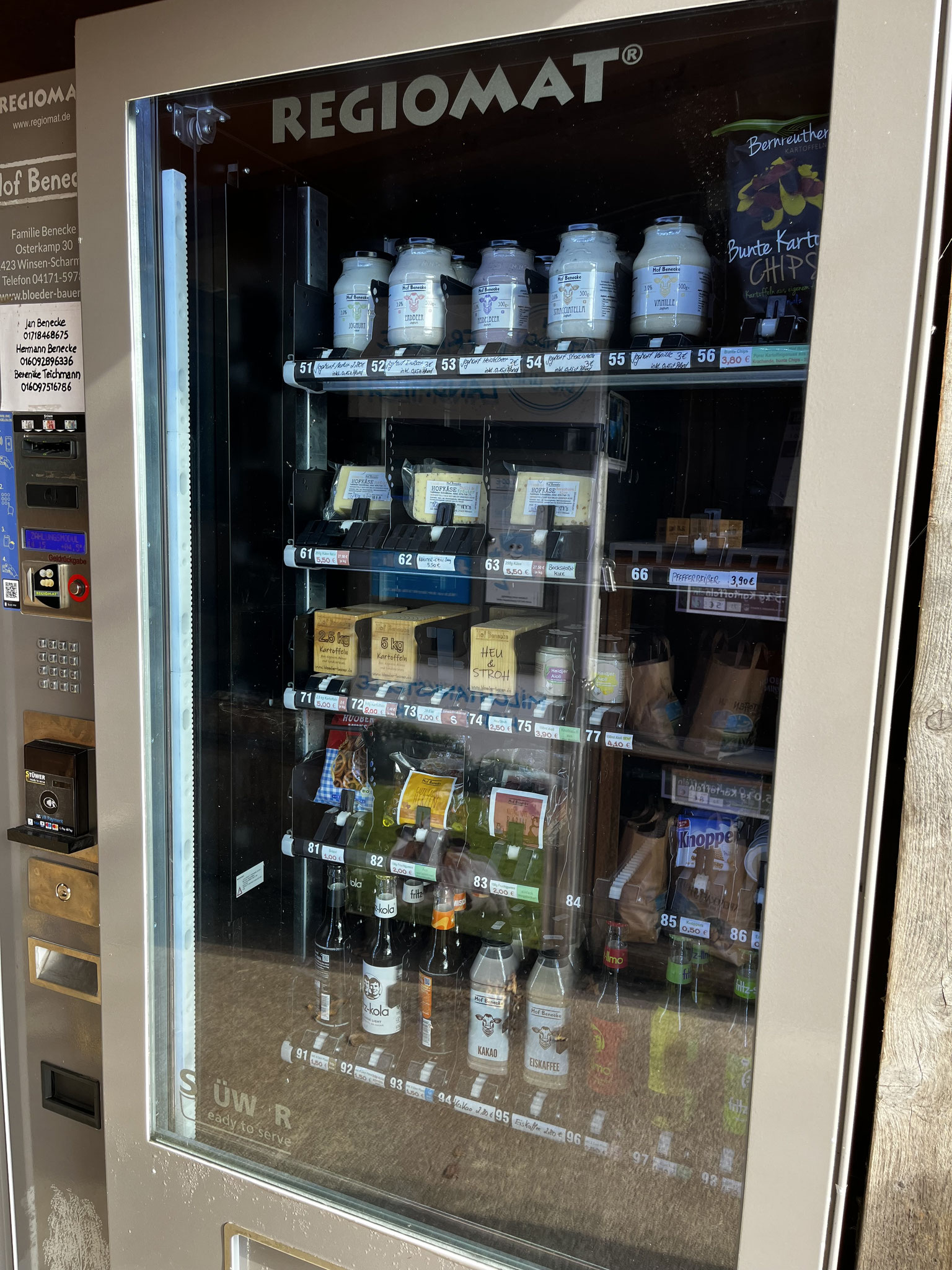 Unsere Automaten befinden sich direkt auf dem Hof – ihr könnt also ganz bequem vorbeischauen, wann immer ihr möchtet.