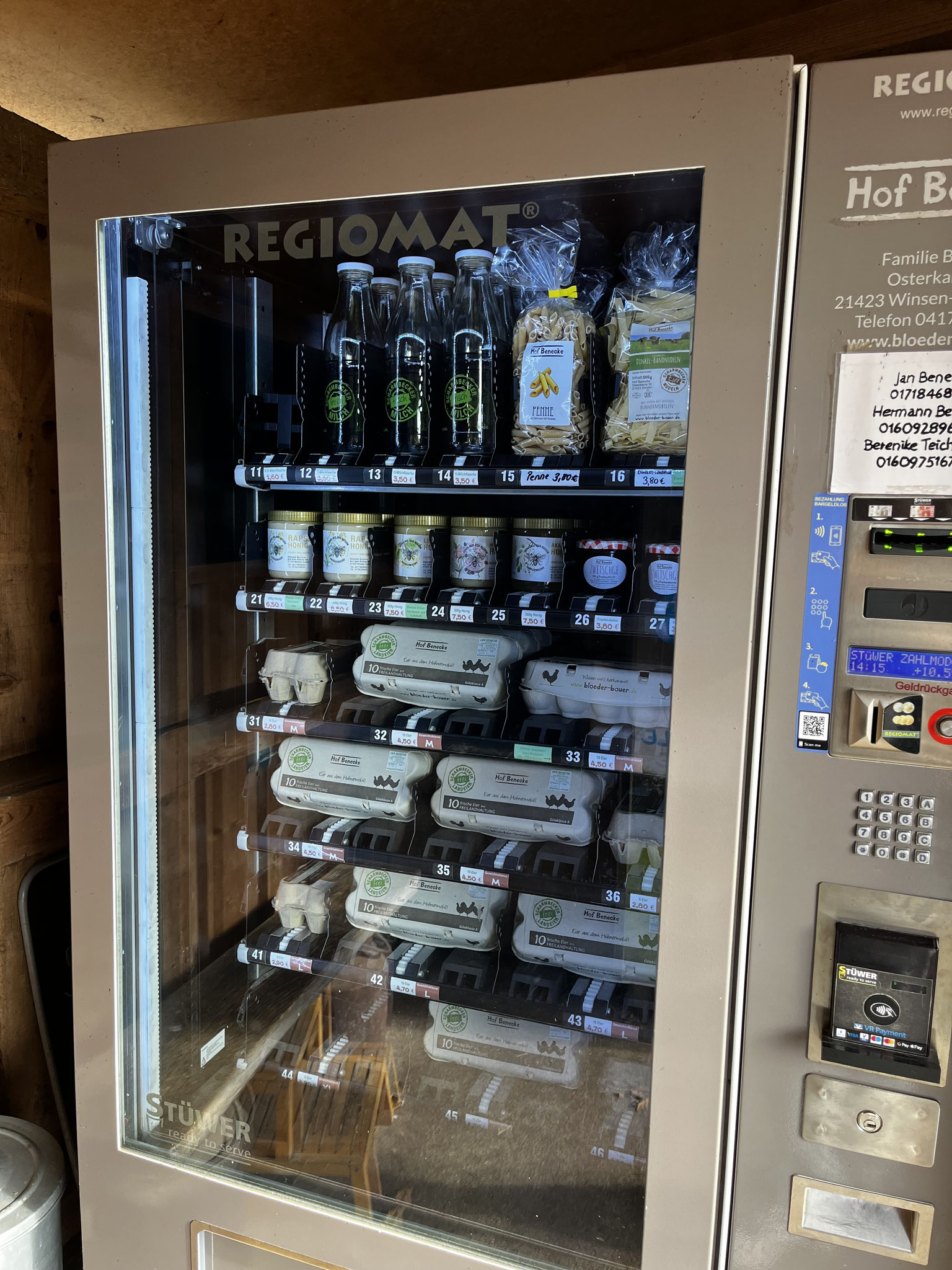 Im Regiomat findet ihr eine kleine, feine Auswahl an Produkten vom Hof und aus der Region – perfekt, wenn ihr spontan vorbeikommt oder außerhalb der Hofladen-Öffnungszeiten einkaufen
