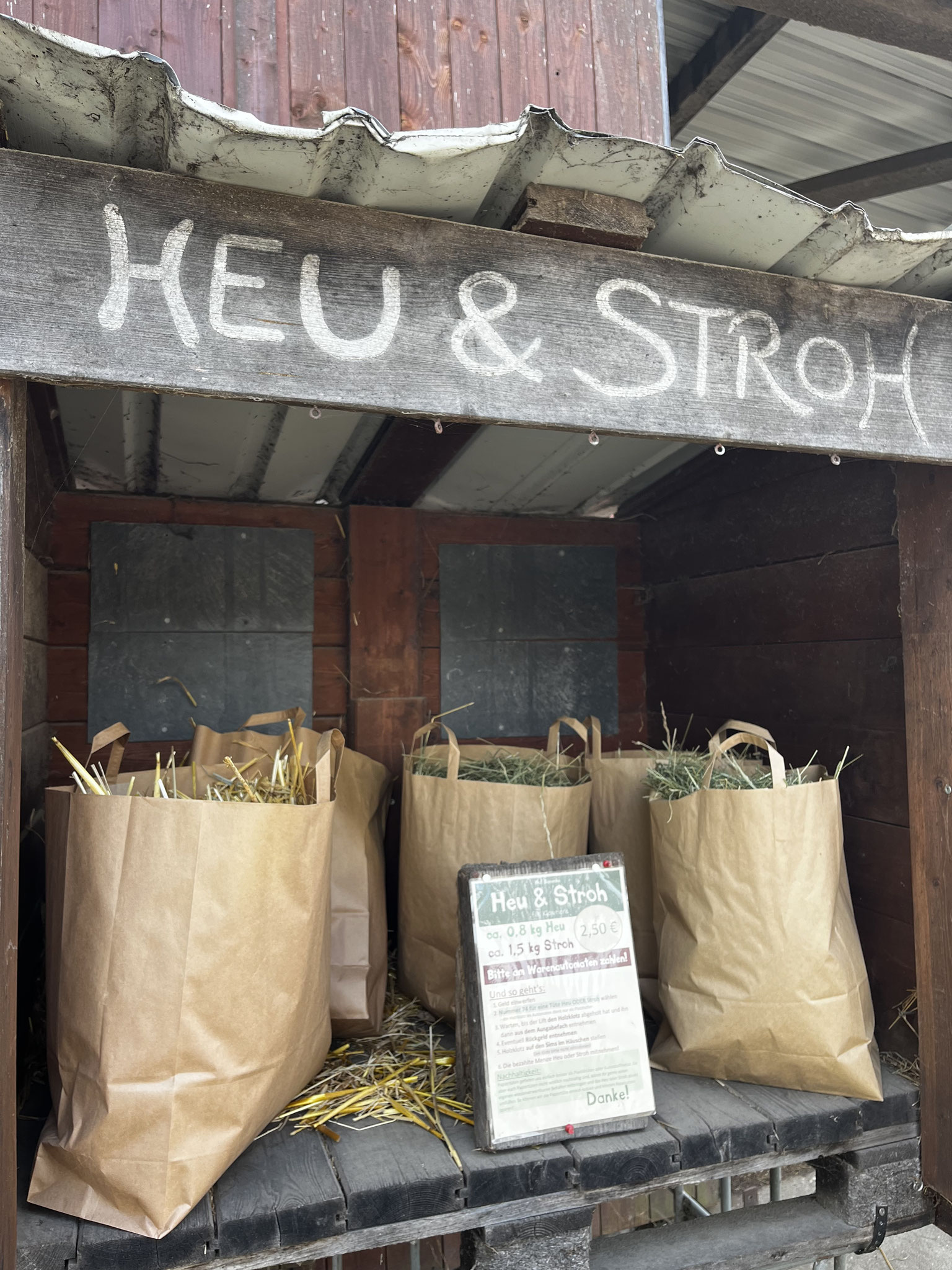 Auch Heu und Stroh für eure Kleintiere sowie Kartoffeln aus eigenem Anbau bekommt ihr direkt hier