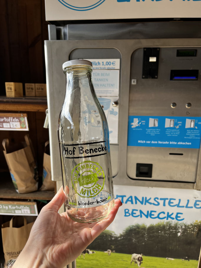 Bringt einfach eure eigenen Flaschen mit oder nutzt unsere praktischen Glasflaschen vor Ort, welche ihr im Regiomaten direkt kaufen könnt.